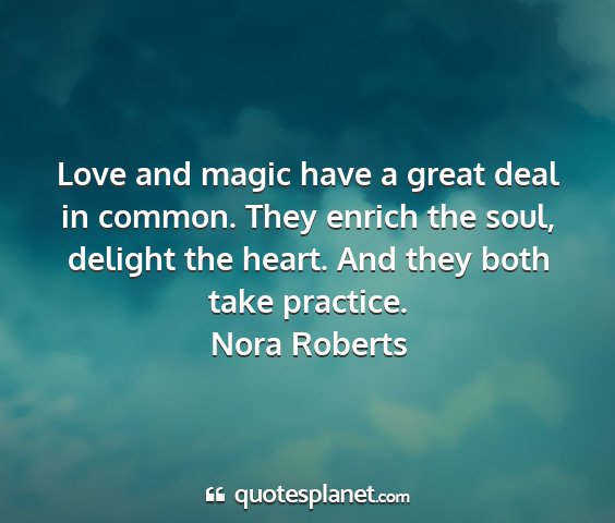 Love and magic have a great deal in common. They enrich the soul, delight the heart. And they both take practice.Nora Roberts