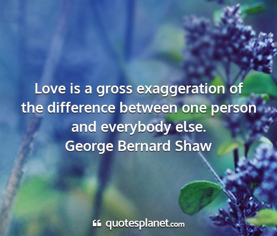 Love is a gross exaggeration of the difference between one person and everybody else.George Bernard Shaw