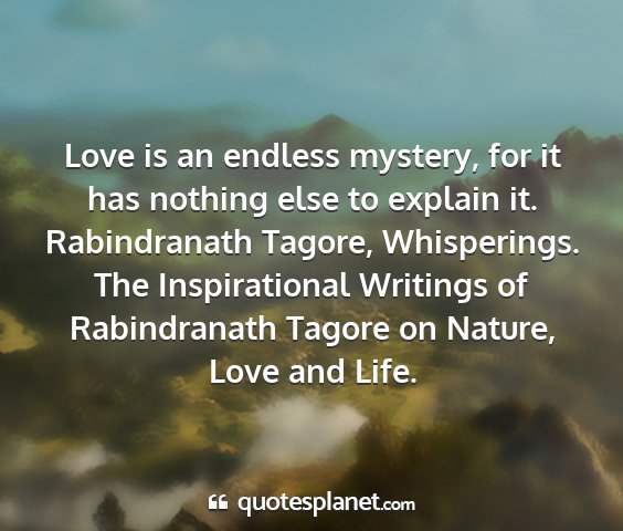 Love is an endless mystery, for it has nothing else to explain it.Rabindranath Tagore, Whisperings. The Inspirational Writings of Rabindranath Tagore on Nature, Love and Life.