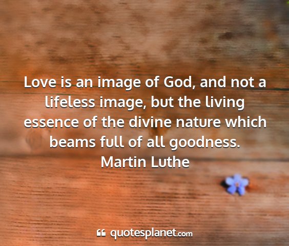 Love is an image of God, and not a lifeless image, but the living essence of the divine nature which beams full of all goodness.Martin Luthe