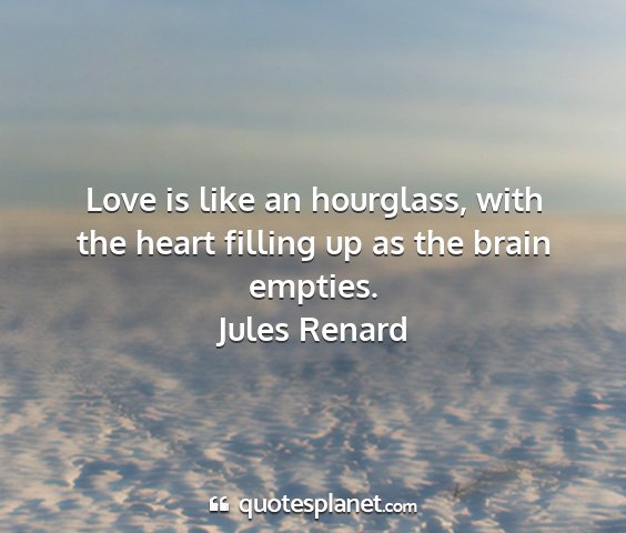 Love is like an hourglass, with the heart filling up as the brain empties.