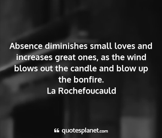 Absence diminishes small loves and increases great ones, as the wind blows out the candle and blow up the bonfire.La Rochefoucauld