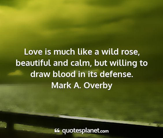 Love is much like a wild rose, beautiful and calm, but willing to draw blood in its defense.Mark A. Overby