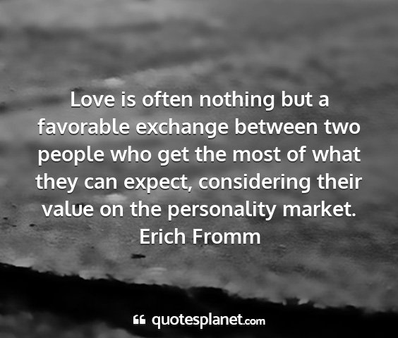 Love is often nothing but a favorable exchange between two people who get the most of what they can expect, considering their value on the personality market.Erich Fromm