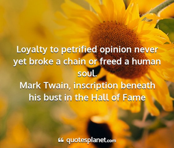 Loyalty to petrified opinion never yet broke a chain or freed a human soul.Mark Twain, inscription beneath his bust in the Hall of Fame