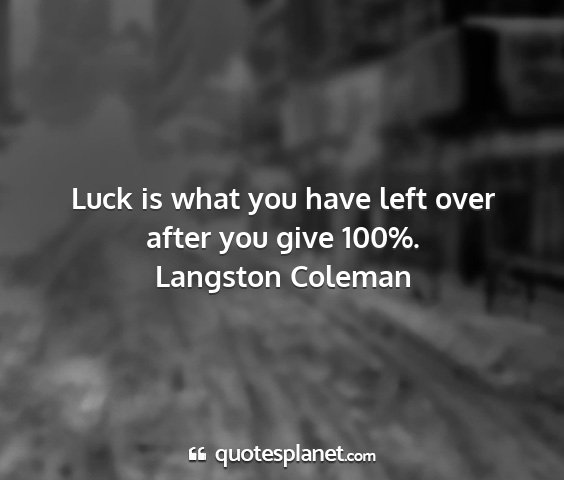 Luck is what you have left over after you give 100%.