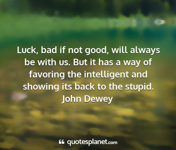 Luck, bad if not good, will always be with us. But it has a way of favoring the intelligent and showing its back to the stupid.John Dewey