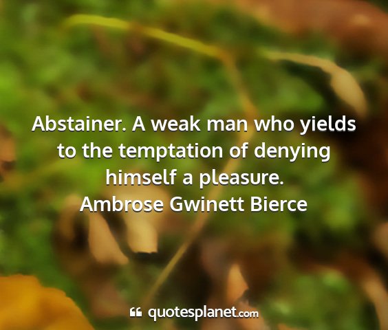 Abstainer. A weak man who yields to the temptation of denying himself a pleasure.Ambrose Gwinett Bierce