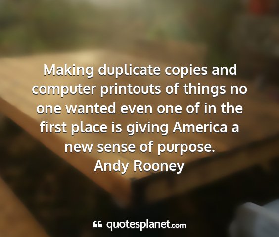 Making duplicate copies and computer printouts of things no one wanted even one of in the first place is giving America a new sense of purpose.Andy Rooney