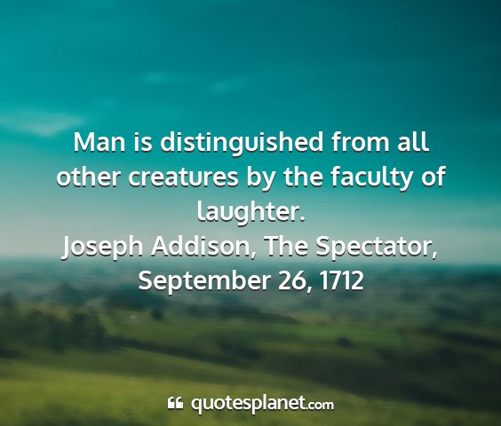 Man is distinguished from all other creatures by the faculty of laughter.Joseph Addison, The Spectator, September 26, 1712