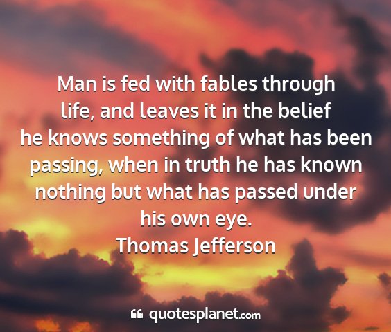 Man is fed with fables through life, and leaves it in the belief he knows something of what has been passing, when in truth he has known nothing but what has passed under his own eye.Thomas Jefferson
