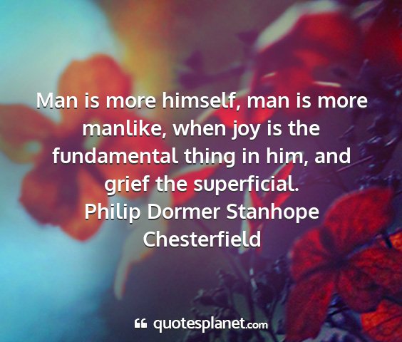 Man is more himself, man is more manlike, when joy is the fundamental thing in him, and grief the superficial.Philip Dormer Stanhope Chesterfield