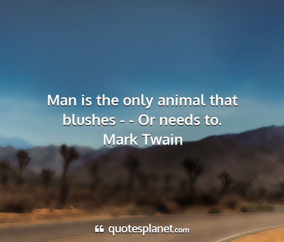 Man is the only animal that blushes - - Or needs to.