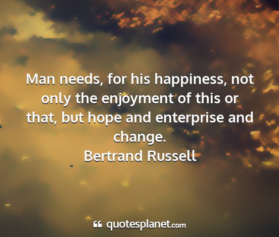 Man needs, for his happiness, not only the enjoyment of this or that, but hope and enterprise and change.Bertrand Russell
