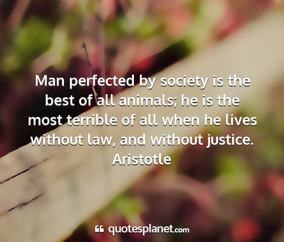 Man perfected by society is the best of all animals; he is the most terrible of all when he lives without law, and without justice.Aristotle