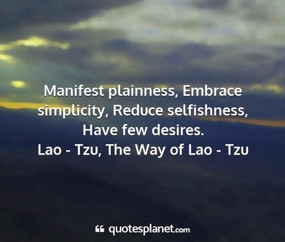 Manifest plainness, Embrace simplicity, Reduce selfishness, Have few desires.Lao - Tzu, The Way of Lao - Tzu