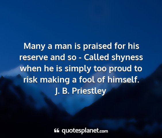Many a man is praised for his reserve and so - Called shyness when he is simply too proud to risk making a fool of himself.J. B. Priestley