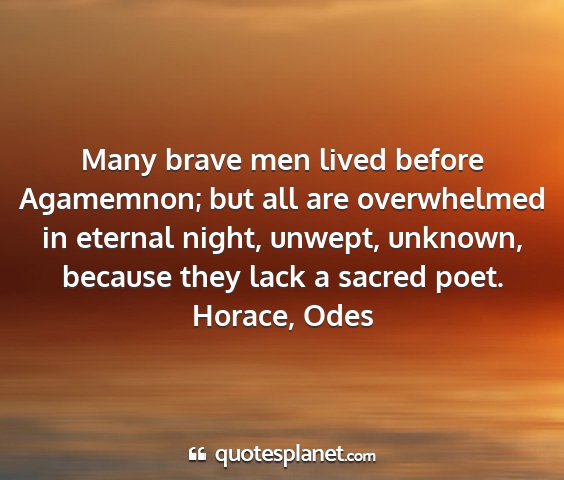 Many brave men lived before Agamemnon; but all are overwhelmed in eternal night, unwept, unknown, because they lack a sacred poet.Horace, Odes