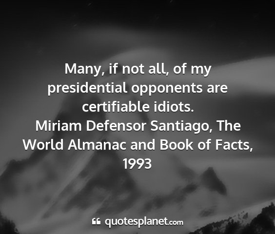 Many, if not all, of my presidential opponents are certifiable idiots.Miriam Defensor Santiago, The World Almanac and Book of Facts, 1993