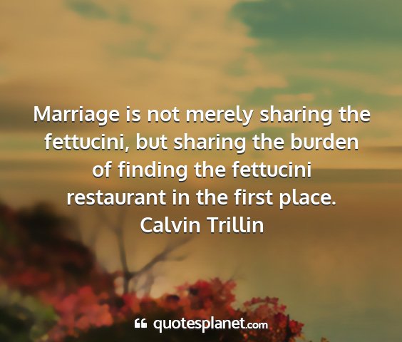 Marriage is not merely sharing the fettucini, but sharing the burden of finding the fettucini restaurant in the first place.Calvin Trillin
