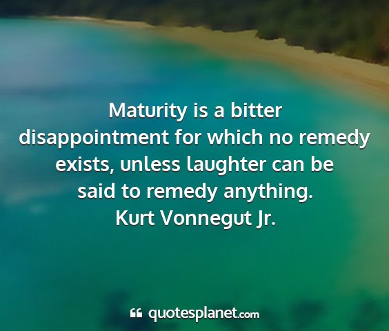 Maturity is a bitter disappointment for which no remedy exists, unless laughter can be said to remedy anything.Kurt Vonnegut Jr.