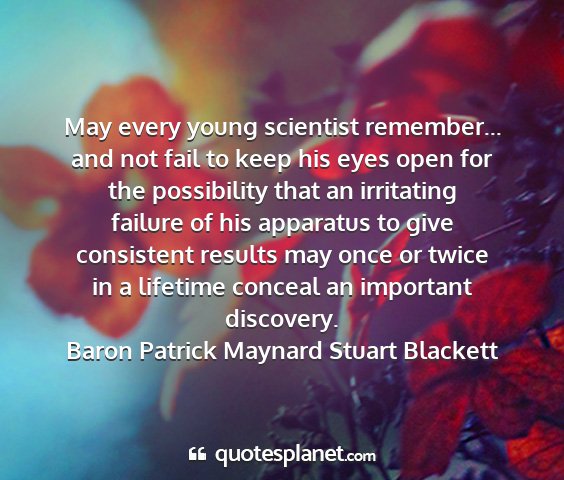 May every young scientist remember... and not fail to keep his eyes open for the possibility that an irritating failure of his apparatus to give consistent results may once or twice in a lifetime conceal an important discovery.Baron Patrick Maynard Stuart Blackett