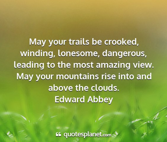 May your trails be crooked, winding, lonesome, dangerous, leading to the most amazing view. May your mountains rise into and above the clouds.Edward Abbey