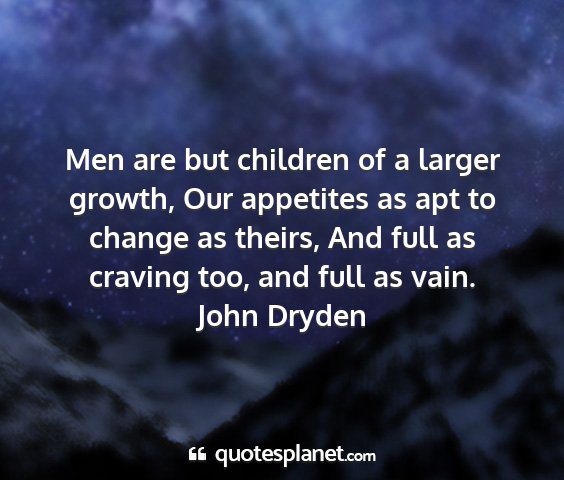 Men are but children of a larger growth, Our appetites as apt to change as theirs, And full as craving too, and full as vain.John Dryden