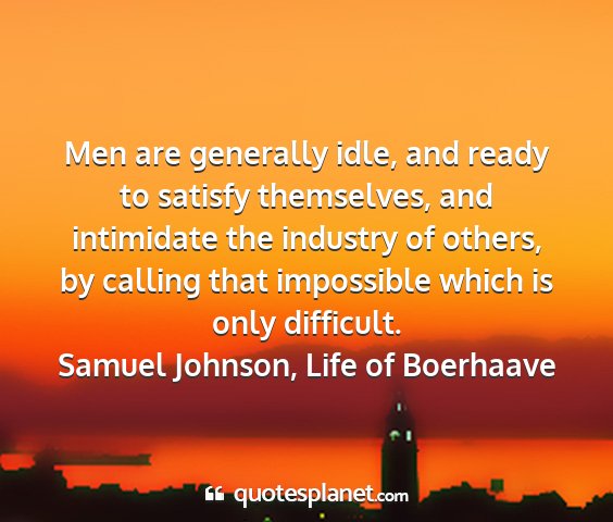 Men are generally idle, and ready to satisfy themselves, and intimidate the industry of others, by calling that impossible which is only difficult.Samuel Johnson, Life of Boerhaave