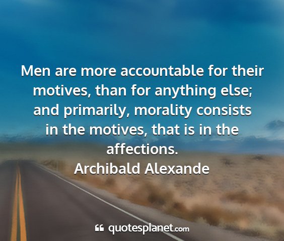 Men are more accountable for their motives, than for anything else; and primarily, morality consists in the motives, that is in the affections.Archibald Alexande
