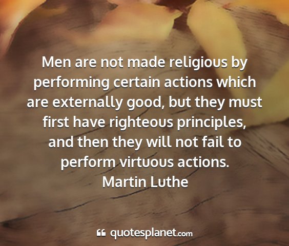 Men are not made religious by performing certain actions which are externally good, but they must first have righteous principles, and then they will not fail to perform virtuous actions.Martin Luthe