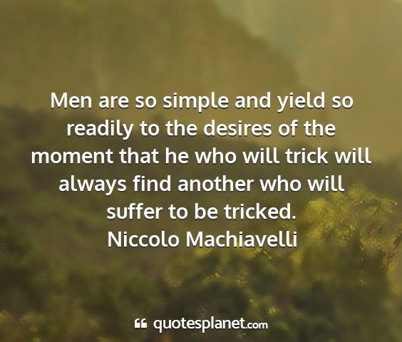 Men are so simple and yield so readily to the desires of the moment that he who will trick will always find another who will suffer to be tricked.Niccolo Machiavelli