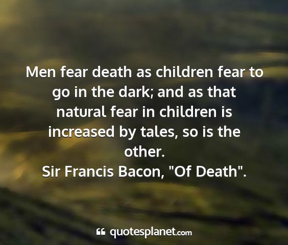 Men fear death as children fear to go in the dark; and as that natural fear in children is increased by tales, so is the other.Sir Francis Bacon, "Of Death".