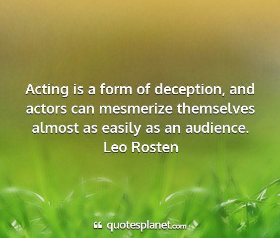 Acting is a form of deception, and actors can mesmerize themselves almost as easily as an audience.Leo Rosten