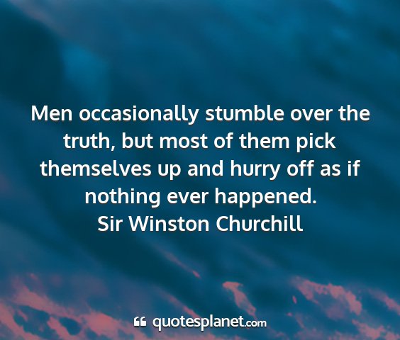 Men occasionally stumble over the truth, but most of them pick themselves up and hurry off as if nothing ever happened.Sir Winston Churchill