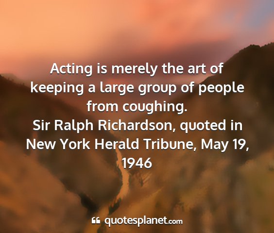Acting is merely the art of keeping a large group of people from coughing.Sir Ralph Richardson, quoted in New York Herald Tribune, May 19, 1946