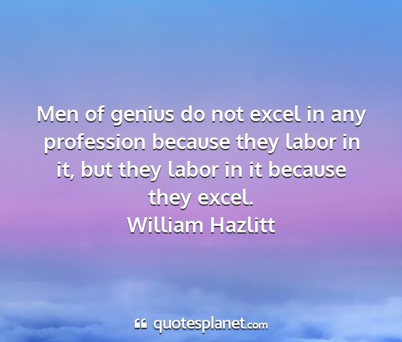 Men of genius do not excel in any profession because they labor in it, but they labor in it because they excel.William Hazlitt