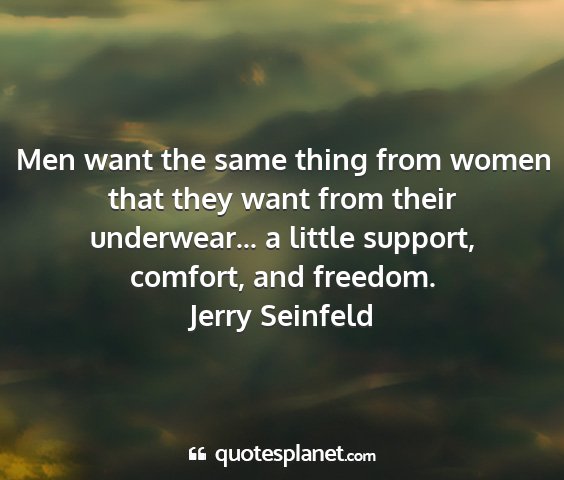 Men want the same thing from women that they want from their underwear... a little support, comfort, and freedom.Jerry Seinfeld