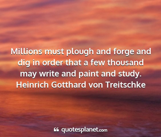 Millions must plough and forge and dig in order that a few thousand may write and paint and study.Heinrich Gotthard von Treitschke
