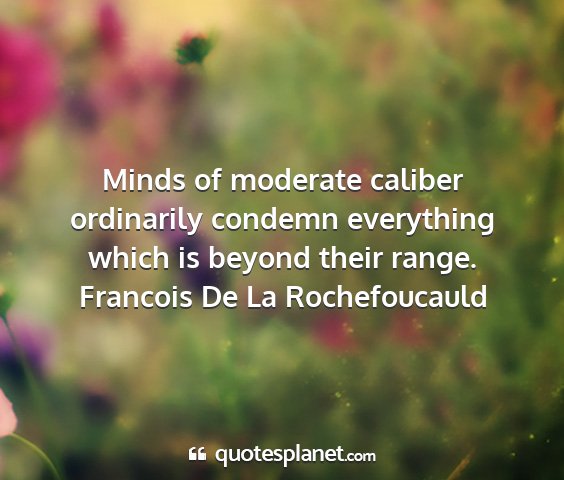 Minds of moderate caliber ordinarily condemn everything which is beyond their range.Francois De La Rochefoucauld