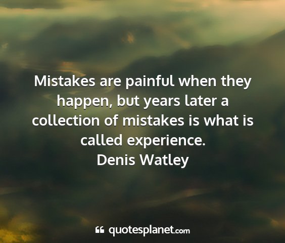 Mistakes are painful when they happen, but years later a collection of mistakes is what is called experience.Denis Watley