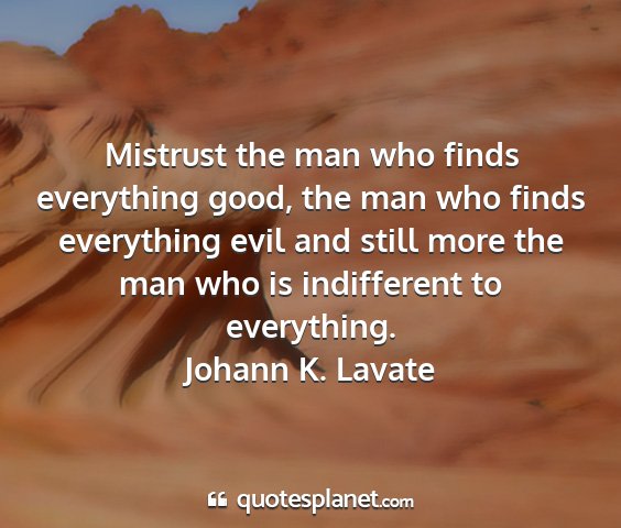 Mistrust the man who finds everything good, the man who finds everything evil and still more the man who is indifferent to everything.Johann K. Lavate