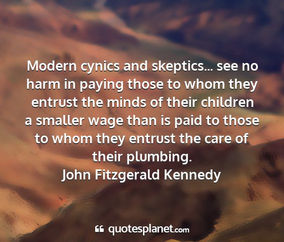 Modern cynics and skeptics... see no harm in paying those to whom they entrust the minds of their children a smaller wage than is paid to those to whom they entrust the care of their plumbing.John Fitzgerald Kennedy