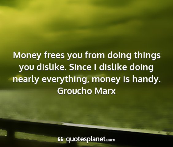 Money frees you from doing things you dislike. Since I dislike doing nearly everything, money is handy.Groucho Marx