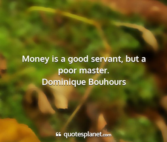 Money is a good servant, but a poor...