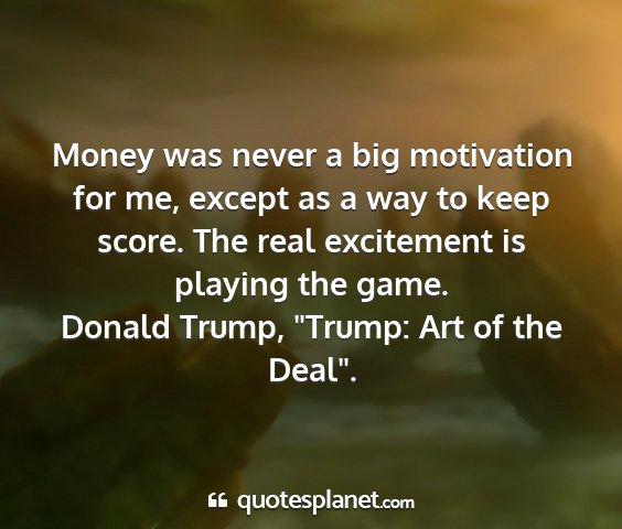 Money was never a big motivation for me, except as a way to keep score. The real excitement is playing the game.Donald Trump, "Trump: Art of the Deal".