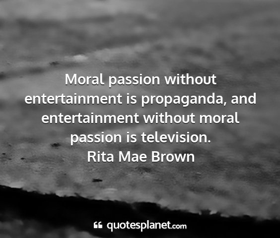 Moral passion without entertainment is propaganda, and entertainment without moral passion is television.Rita Mae Brown