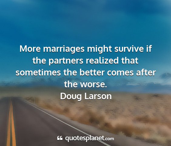More marriages might survive if the partners realized that sometimes the better comes after the worse.Doug Larson