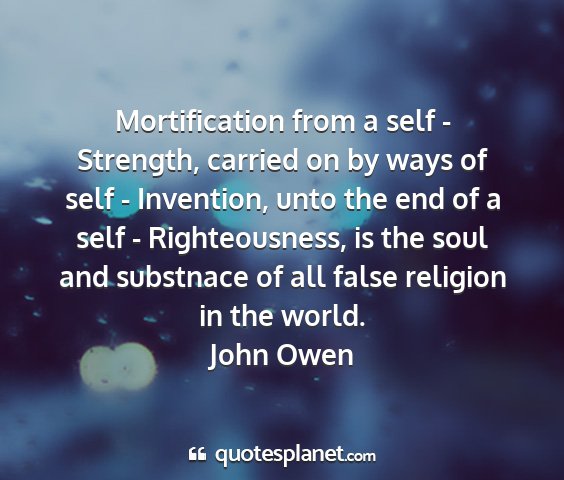 Mortification from a self - Strength, carried on by ways of self - Invention, unto the end of a self - Righteousness, is the soul and substnace of all false religion in the world.John Owen