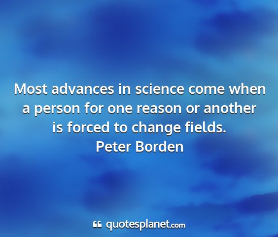 Most advances in science come when a person for one reason or another is forced to change fields.Peter Borden